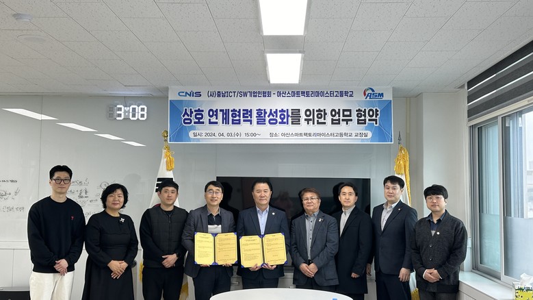 [아산시 세계타임즈=백택기 기자] 아산스마트팩토리마이스터고등학교(교장 조동헌)는 (사)충남ICT/SW기업인협회(회장 이성환)와 상호 연계협력 활성화를 위한 업무협약을 체결했다.
