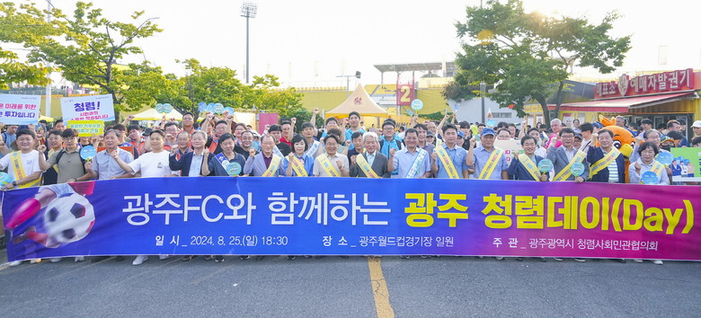 [광주 세계타임즈=손권일 기자] 광주광역시(시장 강기정)는 지역사회 청렴문화 확산을 위해 ‘광주FC와 함께하는 광주 청렴데이(Day)’ 캠페인을 지난 25일 광주축구전용구장 일원에서 진행했다.