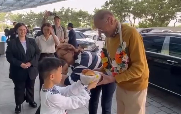 화동의 전통환영에 루마니아 전 대통령내외 “너무 감동”…머리에 입맞춤