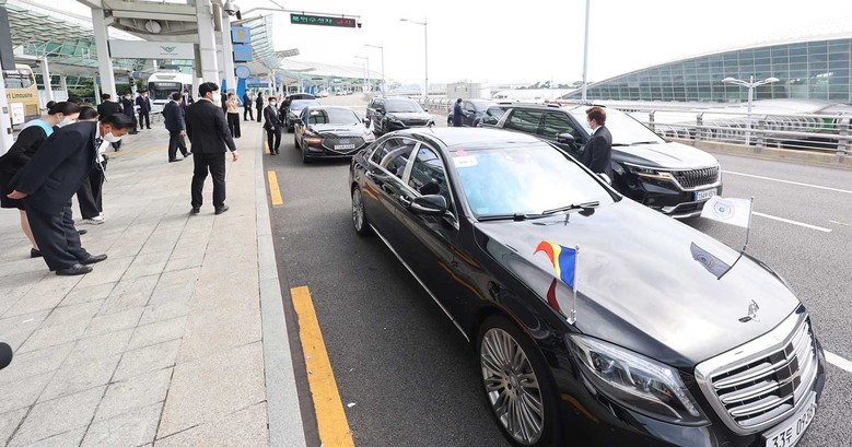 전 대통령 일행이 탑승하는 차량을 보호하기 위해 승합차가 이중으로 배치되는 등 최정상급 의전을 선보였다. 이러한 모습에 에밀 콘스탄티네스쿠 전 대통령의 개인 경호원은 흡족한 미소를 보였다. 에밀 콘스탄티네스쿠 전 대통령에 대한 의전은 여기서 끝나지 않았다. 숙소인 호텔 앞에 다가서자 청년들이 피켓을 들고 환영했고, 전 대통령 내외는 창문을 열고 손을 흔들며 화답했다.
