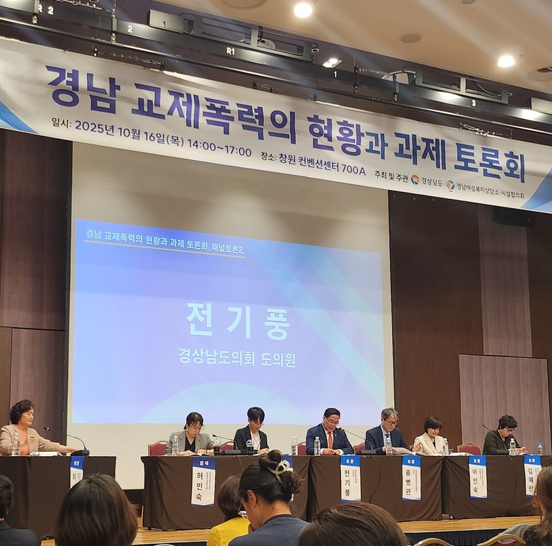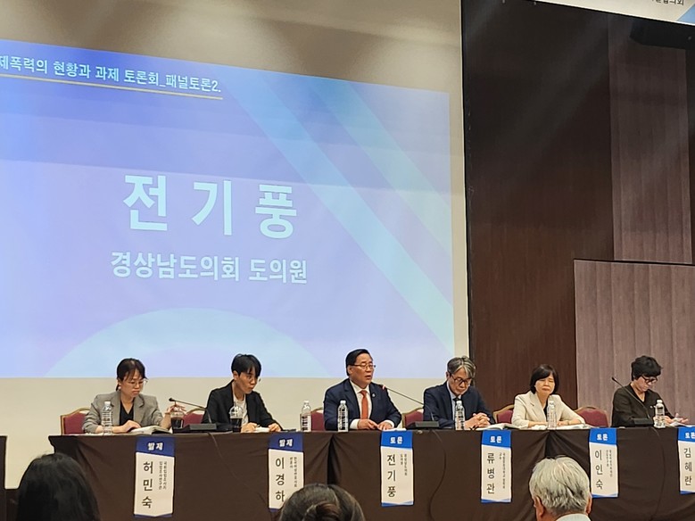 [경남 세계타임즈=최성룡 기자] 경상남도의회 전기풍(국민의힘, 거제2) 의원은 16일 창원컨벤션센터에서 열린 「교제폭력, 반복되는 이유를 묻는다」토론회에 참석해 교제폭력의 실태와 법제도 개선 방안을 제시했다.