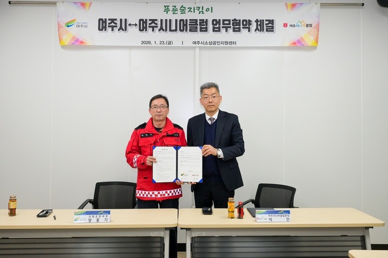 [여주시 세계타임즈=송민수 기자] 여주시(시장 이충우)는 지난 23일 여주시청에서 여주시니어클럽(관장 박찬)과 푸른숲지킴이 업무 협약을 체결하였다.