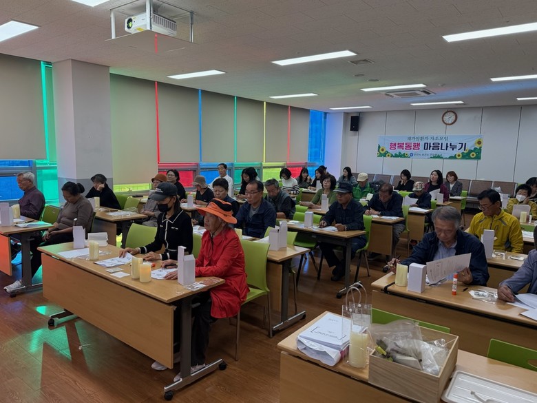 [순천시 세계타임즈=우덕현 기자] 순천시 보건소는 지난 24일 제4차 재가암환자 자조모임 「가족사랑 나눔터」의 일환으로 삼산도서관에서 진행된 ‘캘리그라피 LED 캔들 만들기’ 프로그램이 성공적으로 마무리됐다고 밝혔다.
