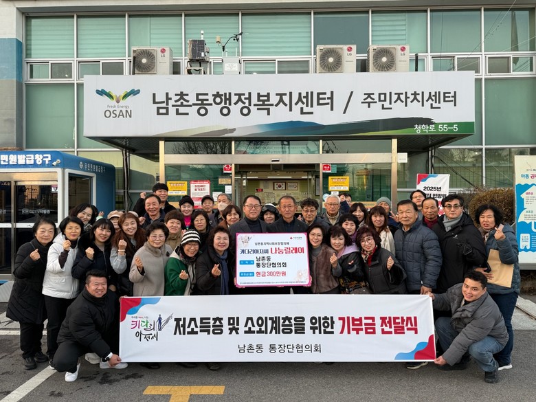 이번 성금은 남촌동 49개 통의 통장들이 1년 동안 곶감, 고구마 등 농산물 판매를 통해 마련한 수익금으로, 지역 주민 곁에서 복지 사각지대 발굴과 지원에 앞장서 온 통장들의 의미 있는 나눔이라는 점에서 더욱 뜻깊다.