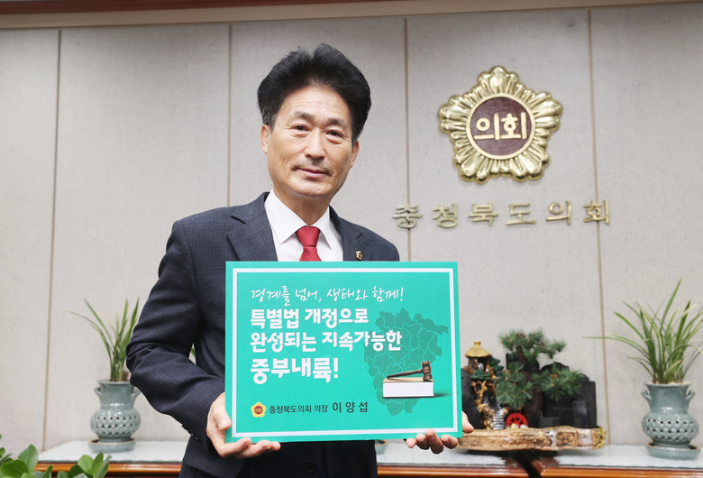 [충북 세계타임즈=이현진 기자] 이양섭 충북도의회 의장이 26일 ‘중부내륙연계발전지역 지원에 관한 특별법’ 개정을 촉구하는 릴레이 챌린지에 동참해 특별법 개정을 위한 연대와 협력의 중요성을 강조했다.