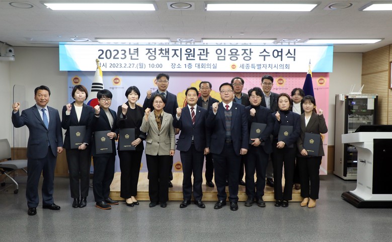 [세종 세계타임즈=이채봉 기자] 세종특별자치시의회(의장 상병헌)는 27일 의회청사 대회의실에서 신규 채용된 정책지원관 6명에게 임용장을 수여했다.