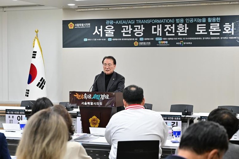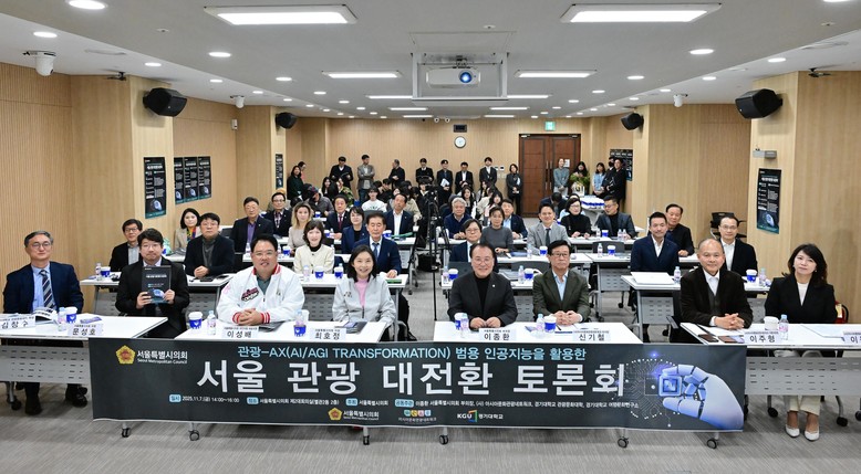 [서울 세계타임즈=이장성 기자] 서울특별시의회 이종환 부의장(국민의힘, 강북1)은 11월 9월(금) 서울시의회 제 2대회의실에서 인공지능(AI)을 기반으로 한 ‘AX 관광 대전환’을 모색하는 토론회가 서울시의회, 학계, 산업계 전문가, 그리고 200여 명의 시민과 학생들이 참석한 가운데 성황리에 개최되었다.