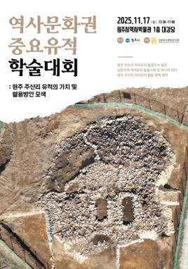 주제발표는 라경화 연구원(강원역사문화연구원)의‘원주 주산리 유적 발굴조사 성과’를 시작으로 정치영(한성백제박물관) ‘남한지역 적석묘의 발굴사례 및 역사적 의의’, 김규운 교수(강원대학교)의 ‘원주 주산리 적석묘의 활용방안 제언’의 순서로 진행된다.