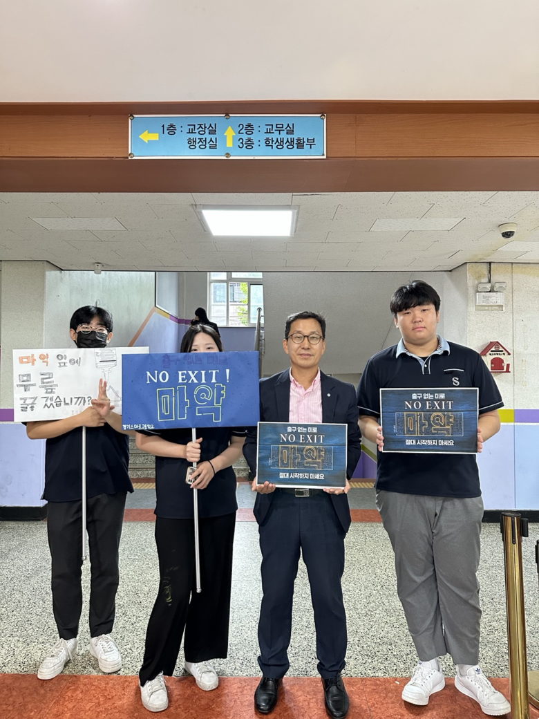 한편, 이선길 교장은 ‘NO EXIT’ 마약범죄 예방 릴레이 챌린지 다음 캠페인 주자로 군자디지털과학고등학교 윤상만 교장을 지목했다.