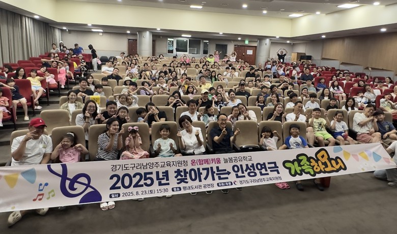 [남양주시 세계타임즈=송민수 기자] 구리남양주교육지원청(교육장 서은경)은 8월 23일 (토) 평내도서관 공연장에서 “온(함께)키움 늘봄공유학교, 찾아가는 인성연극 「가족하모니」” 공연을 개최했다.