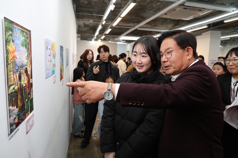 이어 기념촬영을 진행하며 아이들과 가족들의 손을 맞잡고 응원의 말을 전했다. 시상식은 작품 감상과 전시장 관람을 끝으로 마무리되었으며, 현장을 찾은 가족들은 아이들의 수상을 함께 축하하며 따뜻한 시간을 보냈다.