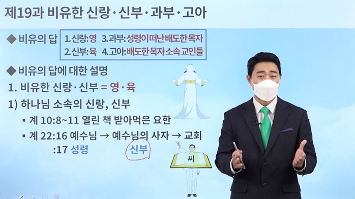 [세계타임즈 백진욱 기자] 신천지예수교 증거장막성전(신천지예수교회)가 10일 시온기독교선교센터 초등 과정 제19과 ‘비유한 신랑, 신부, 과부, 고아’를 주제로 유튜브 라이브 강의를 진행했다.