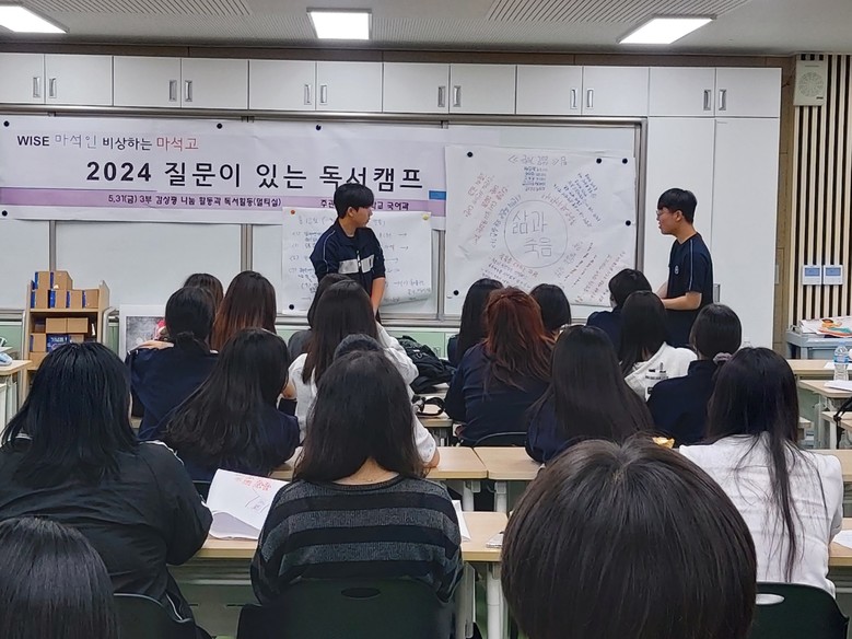 [남양주시 세계타임즈=송민수 기자] 경기도구리남양주교육지원청 마석고등학교(교장 이춘오)는 질문하는 학교 연계 프로그램 중 하나로‘질문이 있는 독서캠프’를 개최하여 학생들이 질문을 통해 ‘나’, ‘너’, ‘세상’과 만날 수 있는 시간을 마련하였다.
