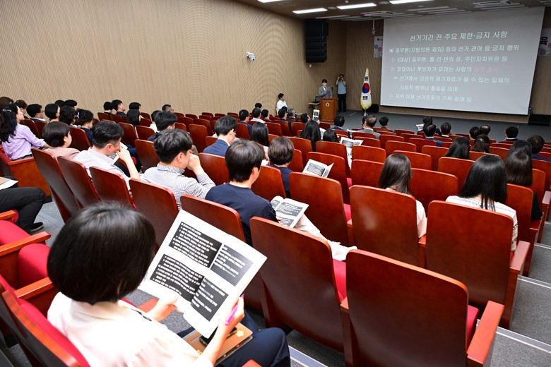 이날 강의는 경상남도선거관리위원회 김효식 지도담당관이 맡아 최근 개정된 공직선거법의 주요 변화사항, 후원회 등 관련 정치자금법 주요 내용, 공직선거 및 정치자금의 주요 위반사례 및 예방대책 등을 설명하며, “사소한 실수라도 선거법 위반으로 이어질 수 있는 만큼 평소 철저한 법령 숙지가 필요하다고” 강조했다.