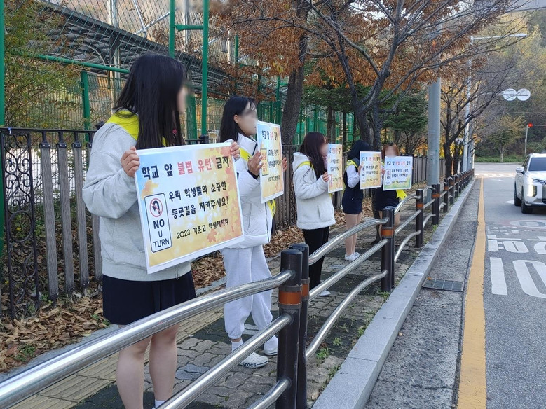함께 참여한 가운고 학생회에서는 정문 앞에서 ‘학교 앞 불법 유턴 금지’, ‘학교 앞 과속 금지’, ‘학교 정문 앞 정차 금지’, ‘우리 학생들의 소중한 등굣길을 지켜주세요’, ‘학교 앞은 천천히! 안전 속도를 지켜주세요’ 등의 구호를 외치며 동참했다.