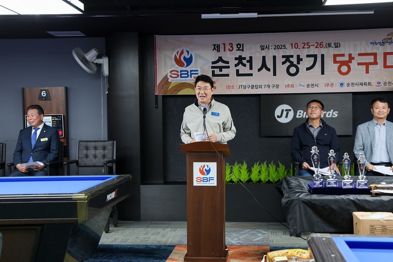 노관규 시장은 대회사에서 “당구는 남녀노소 누구나 즐길 수 있는 대표적인 생활체육 종목으로, 건전한 여가문화 형성에 크게 기여하고 있다”며 “순천시는 남해안남중권 종합스포츠파크 조성, 2035 하계 유니버시아드 대회 유치, 생활체육 활성화 지원 등을 통해 시민 누구나 스포츠를 통해 건강한 삶을 누릴 수 있는 남해안 스포츠 허브 도시로 도약하겠다”고 말했다.