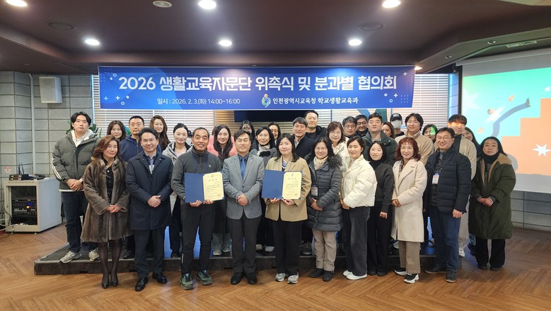 [인천 세계타임즈=심하린 기자] 인천광역시교육청(교육감 도성훈)은 3일 샤펠드미앙에서 생활교육자문단 50명을 대상으로 ‘2026년 위촉식 및 분과별 협의회’를 개최했다.