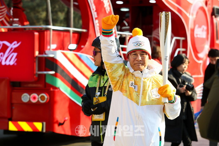 이날 83번 주자로 참여한 김회장은 초당순두부 마을에서 불길을 이어가며 평창올림픽에 참여한 국가대표 선수들의 건승을 응원했다.