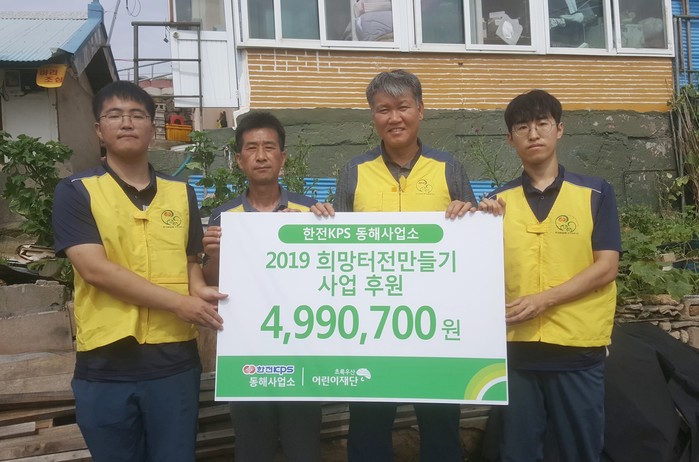 한전KPS㈜ 동해사업소는 이날 ‘2019 희망터전만들기’에 총 4,990,700원을 후원하고 임직원들이 참여한 가운데 동해시에 거주하는 아동 가정 2곳에 도배 및 장판, 화장실 수리, 전기 배선 및 조명 교체 등 주거 환경 개선 사업을 진행했다.