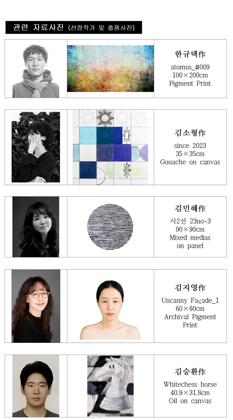 선정된 작가는 ▲3·4월 한규택(사진) ▲5·6월 김소형(미술) ▲7·8월 김민혜(미술) ▲9·10월 김지영(사진) ▲11·12월 김승환(미술)이다.