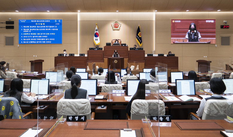 경상북도청소년의회 교실은 미래의 유권자인 학생들이 일일 도의원이 되어 도의회 본회의장에서 지방의회 의사일정을 스스로 운영하여 도의원의 의정활동과 민주적 의사결정과정을 직접 체험하는 교육 프로그램이다.