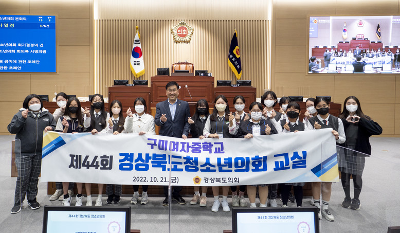 [경북 세계타임즈=한성국 기자] 경상북도의회(의장 배한철)의 “2022년 경상북도청소년의회 교실”이 구미여자중학교 학생들을 대상으로 10월 21일 경상북도의회 본회의장에서 개최됐다.