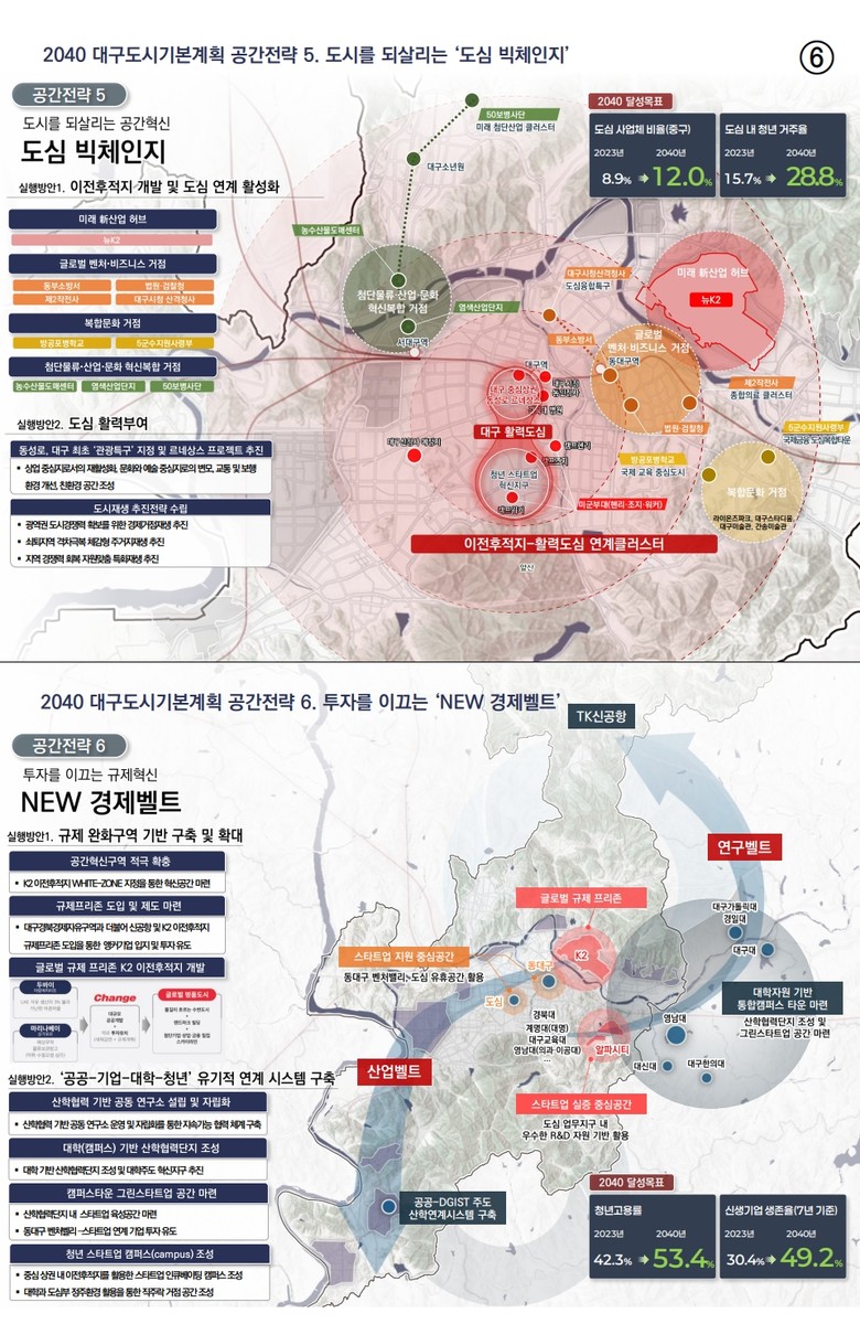 2040년 대구의 미래상은 ‘세계·미래·세대를 잇는 초연결도시 대구’로 제시하고, 미래상을 실현하기 위해 3대 목표를 △세계를 연결하는 관문도시 △미래를 연결하는 활력도시 △세대를 연결하는 매력도시로 설정했다.
