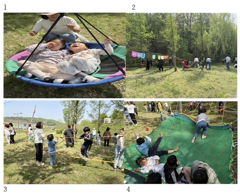 아이들은 누워서 봄하늘을 볼 수 있는 해먹, 나와 친구의 다리가 휘청거리는 여러 가지 다리, 앞뒤로 빙글빙글 도는 그네 등의 프로그램 경험하며 순서 기다리기, 양보하기, 함께 놀이하기 등을 배웠다.