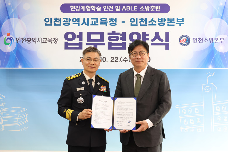 도성훈 교육감은 “이번 협약은 학생 안전을 최우선 가치로 삼는 인천시교육청과, 현장 경험을 갖춘 인천소방본부가 함께 공공의 책임을 실천하는 협력 모델”이라며 “앞으로도 유관기관과의 긴밀한 협력으로 모두가 안전한 교육환경 조성에 최선을 다하겠다”고 밝혔다.
