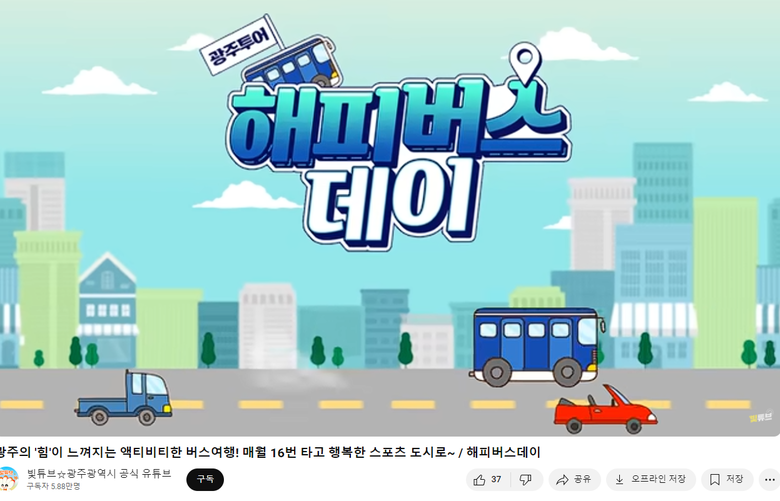 정책 담당자가 직접 전하는 정책 토크쇼 ‘별☆들에게 물어봐’와 대·자·보(대중교통, 자전거, 보행 중심) 도시 광주만의 다양한 매력을 담은 ‘해피버스데이’는 10월 말 현재 채널 내 콘텐츠 조회수 1위부터 5위까지 차지하고 있다. 이 가운데 10만이상 조회수를 기록한 영상이 4편이나 되는 등 주목받고 있다.