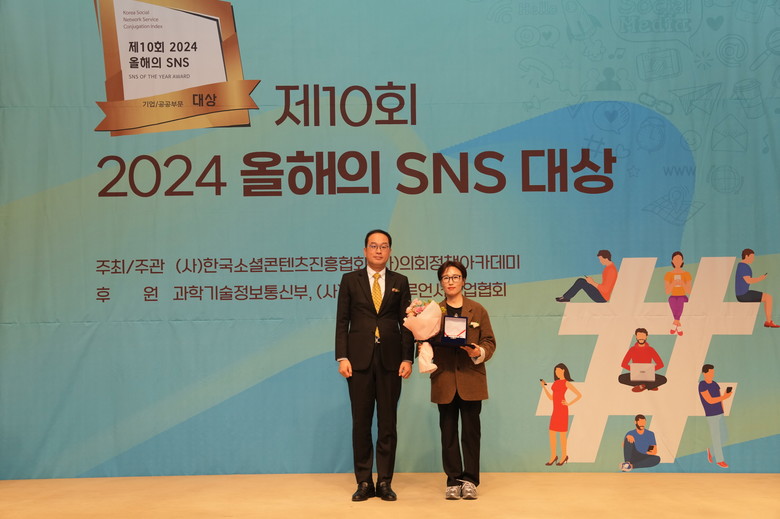 ‘2024 올해의 SNS’는 소셜미디어 관련 전문가들의 비영리단체인 ㈔한국소셜콘텐츠진흥협회 등이 주최하고 과학기술정보통신부, ㈔한국인플루언서산업협회 등이 후원하는 관련분야 최고 권위의 상이다.
