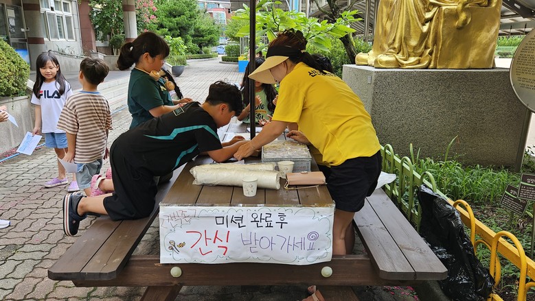 이번 행사는 물총으로 페트병 맞추기, 종이컵으로 물 옮기기, 머리 위 바구니에 물풍선 던져 받기, 스폰지 물총으로 양동이에 물 채우기, 물놀이 타투 스티커 붙이기 등을 완료하면 간식을 즐길 수 있도록 하는 등 다채로운 물놀이 게임으로 많은 학생들이 즐거운 시간을 가졌다.