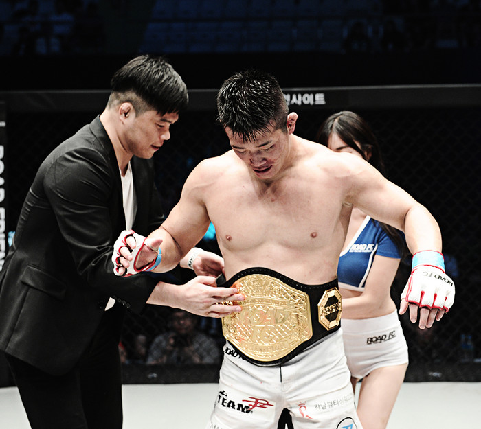 최근 ROAD FC에서 경쟁이 가장 치열한 체급은 미들급이다. ‘짱돌’ 차정환과 ‘1세대 파이터’ 최영이 정상을 지켰고, ‘흑곰’ 박정교, ‘돌격대장’ 김내철 등에 황인수가 4연승을 달리며 ‘라이징 스타’로 떠올랐다. 그리고 지난 28일, XIAOMI ROAD FC 048에서 ‘비보이 파이터’ 라인재가 새로운 미들급 챔피언으로 등극하며 세대교체의 정점을 찍었다.