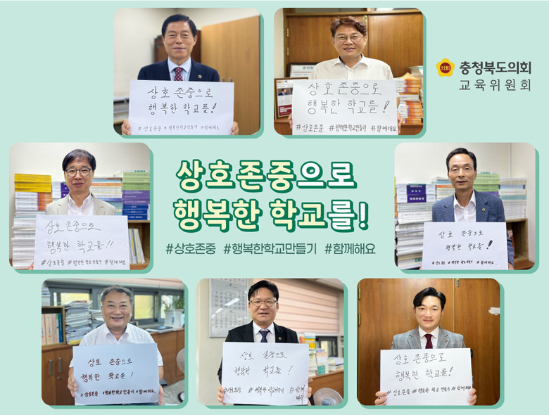 [충북 세계타임즈=이현진 기자] 충북도의회 교육위원회(위원장 김현문)는 11일 ‘학생·교사·학부모’ 상호존중 행복한 학교 만들기 사회관계망서비스(SNS) 릴레이 캠페인을 시작했다.