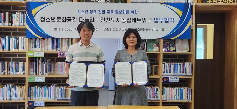 중앙도서관 관계자는 “이번 협약으로 청소년들이 다누리 텃밭을 직접 가꾸며 생명의 소중함과 생태적 삶의 가치를 배우는 기회가 확대될 것”이며 “도시농업과 청소년교육이 결합된 새로운 모델로 인천의 지속가능한 생태문화 조성에 기여하길 기대한다”고 말했다.