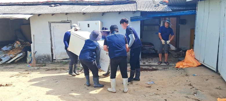 [충남 세계타임즈=이현진 기자] 충남도의회가 집중호우로 침수 피해를 당한 서산 상성리를 찾아 과수원 유실지와 침수가옥 복구 및 하천변 쓰레기 수거 등 복구작업을 지원했다.