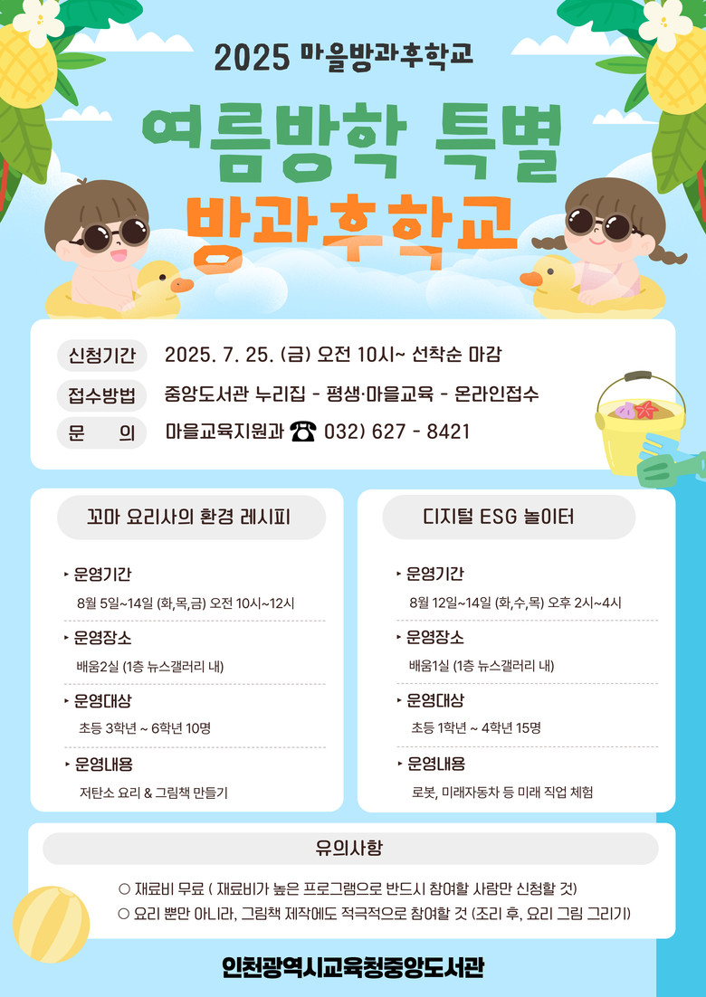 [인천 세계타임즈=심하린 기자] 인천광역시교육청중앙도서관(관장 곽미혜)은 8월 5일부터 14일까지‘2025년 도서관과 함께하는 마을방과후학교’ 프로그램을 운영한다.