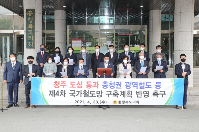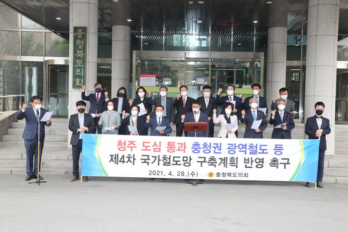 도의회는 “국토교통부가 제4차 국가철도망 구축계획 초안에 청주도심 통과 충청권 광역철도망을 포함하지 않은 것은 국가균형발전의 의지가 없는 것이다”라고 꼬집으며, “청주 도심 통과 충청권 광역철도는 도심의 심각한 교통체증 해소와 도시 활성화 촉진, 충청권 메가시티 발전에 크게 기여할 것이다”고 주장했다.