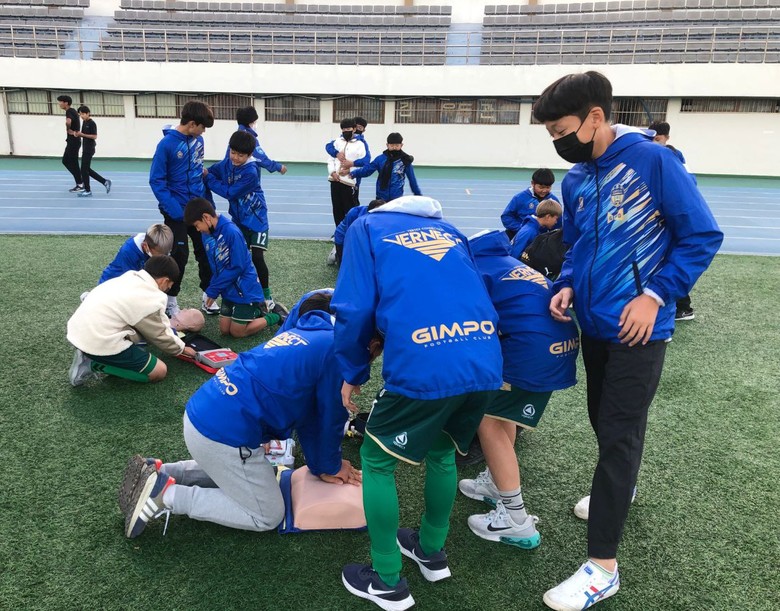 석태정 응급구조사와 윤영미 전문강사의 지도로 진행된 이번 교육은 운동장 잔디 위에서 교육이 이루어져 현장감이 더했으며 특별한 의미가 있다고 말하고 교육에 참여한 선수단은 심폐소생술과 심장충격기 사용방법도 직접 체험을 할 수 있어서 좋았지만 외상처치가 선수들에게 큰 호응을 얻었다고 말했다.