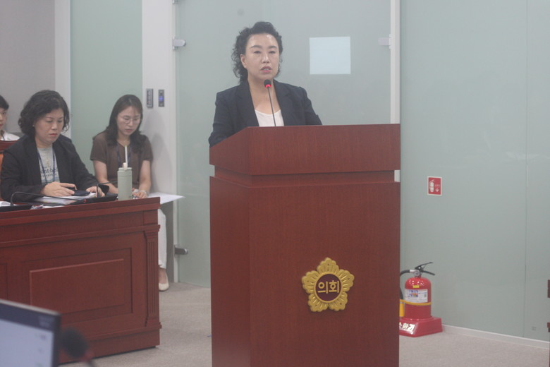 | ▲곽미숙 의원(국힘,고양6) 경기도 문화유산과 자연유산의 보존 및 활용에 관한 조례 일부개정조례안 제안설명 모습. |