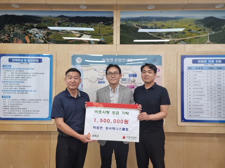 [강화군 세계타임즈=심하린 기자] 강화군 하점면(면장 이철호)은 지난 25일, 강서 테니스클럽(회장 조휘남)에서 어려운 이웃을 위한 성금 150만 원을 기탁했다고 전했다.
