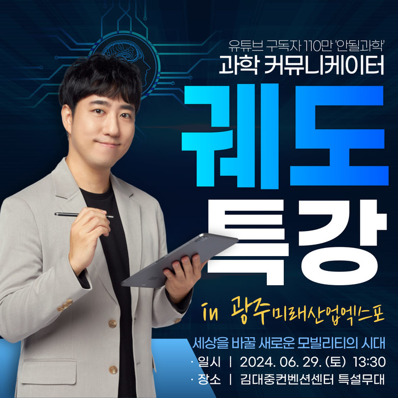 특히 전시회 마지막 날인 29일 오후 1시30분 구독자 110만명을 보유한 과학유튜버 ‘궤도’의 특별강연이 열린다. 궤도는 ‘세상을 바꿀 새로운 모빌리티의 시대’를 주제로 한 특강에서 자율주행기술의 현주소와 사회적 문제 해결을 위한 자동차 구동 시스템 등을 다룰 예정이다.
