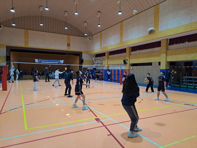 최근 학생들이 틈새 시간에 자율적으로 배구를 즐기고 인근 학교와 친선 배구 대회에 참여하는 등, 관심과 참여가 높은 배구 종목을 활용하여 학생들의 스트레스 해소 및 학교폭력 예방 교육을 추진했다.