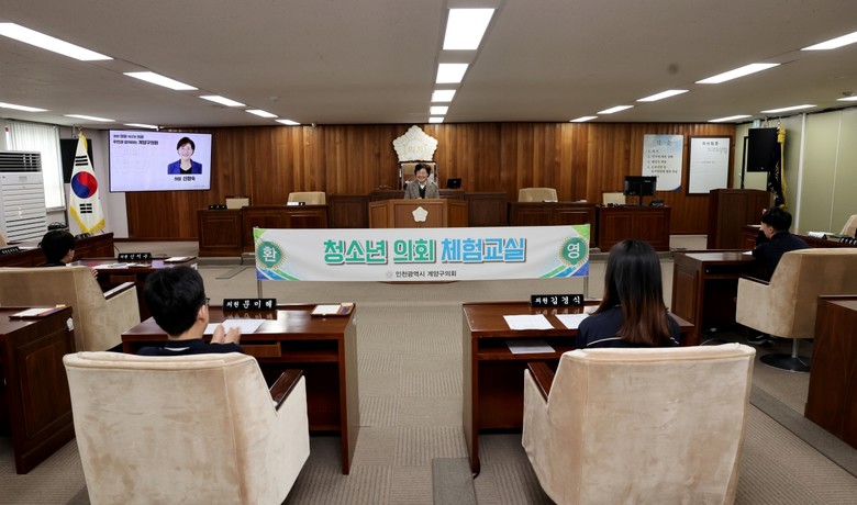 [계양구 세계타임즈=심하린 기자] 인천 계양구의회(의장 신정숙)는 지난 13일 인천예일중학교 학생 7명을 대상으로 의회 본회의장에서 ‘청소년의회 체험 프로그램’을 진행했다.