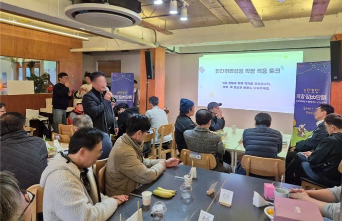 이를 위해 지난 7월부터 직장 적응 사후관리 프로그램인 「치얼업 데이(Cheer Up Day, CU데이)」를 운영하고 있으며, 민간기업 장기재직자와 구직자가 만나 서로 정보를 공유하고 응원하는 「도란도란 희망JOB談(잡담)」행사도 개최했다.