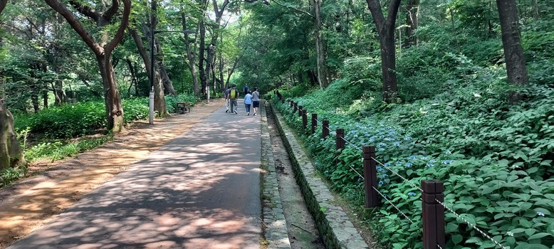 월미공원 둘레길은 숲속에서 바다를 보면서 산책할 수 있는 인천의 대표적인 명소로, 산책길 주변으로 총 1만여 본의 산수국이 식재돼 있어 여름철 특색있는 둘레길로 주목받고 있다.