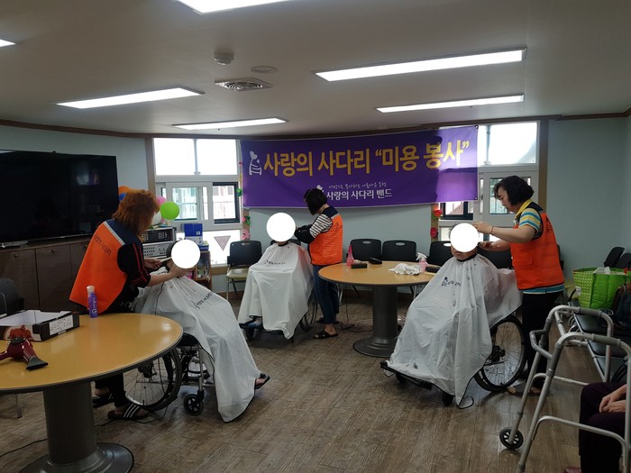 도마요양원 임준빈 원장은 “오늘 사랑의 사다리 밴드에서 미용봉사를 지원해 주셔서 큰 힘과 위안이 된다.“면서 감사함을 전했다.