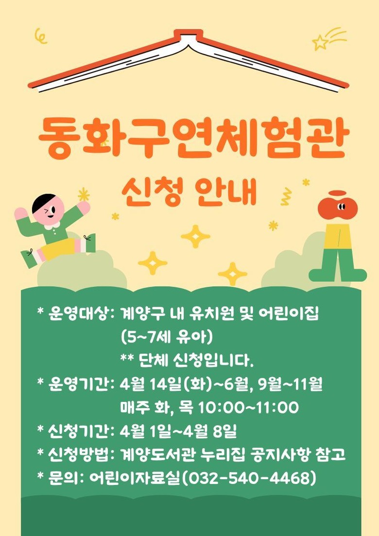 자세한 사항은 계양도서관 누리집의 공지사항을 확인하거나 어린이자료실(☎032-540-4468)로 문의하면 된다.