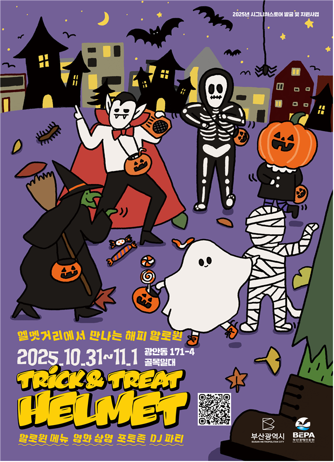 내일(31일)부터 11월 1일까지 2일간 수영구 헬멧 골목상권(수영로554번가길 22 일원)에서 '헬멧거리에서 만나는 해피 핼러윈'이 개최된다.
