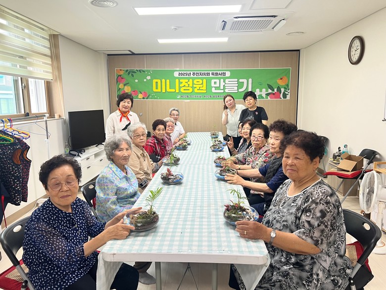 이번 사업은 반려식물을 활용해 어르신의 정서안정을 돕고 심리적 활력을 북돋기 위한 프로그램으로, 주민자치위원들과 어르신들이 함께 탁상용 미니화분을 제작하는 방식으로 운영되며 총 3회 걸쳐 진행되고 있다.